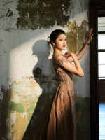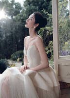 陈瑶穿抹胸长裙化身油画女郎 盘发造型精致优雅