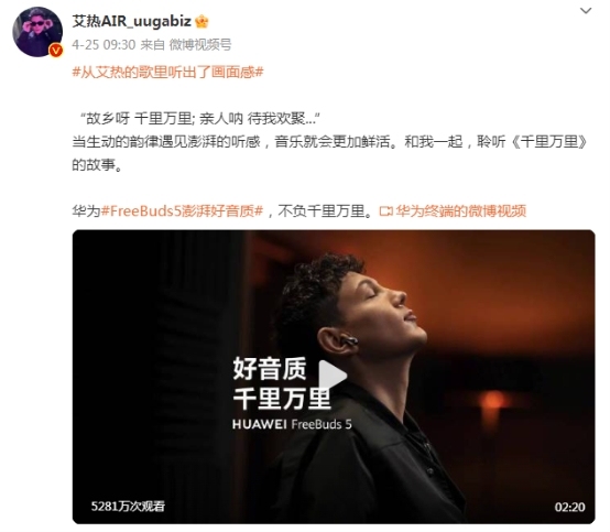 近日,在央视播出的2023五一国际劳动节“心连心”特别节目中,歌手艾热AIR献唱歌曲《时代感》,以轻快节奏唱响“中国梦·劳动美”的节日欢歌,带大家在音乐中沉浸式领略祖国各地的美景