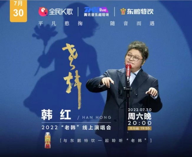 2022-08-01 17:01:23老韩7月30日晚,韩红2022“老韩”线上演唱会在TMElive重磅上线。