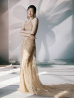 辛芷蕾金色拖尾裙华丽优雅 展露曼妙身姿曲线迷人