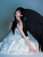 田曦薇戴黑色翅膀变堕天使 穿白色抹胸裙又纯又欲