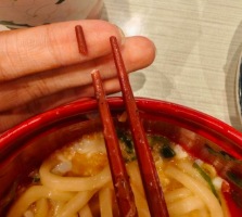 吃寿司把筷子给咬断了