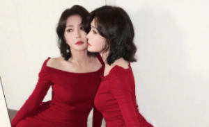 秦岚酒红露肩长裙性感魅惑 眉眼含情尽显冷艳大气