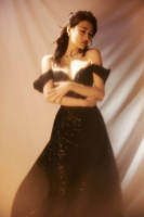 张子枫穿一字肩长裙神秘矜贵 垂眸沉思似女神降临