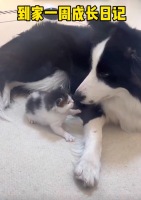 小狗在下水道捡到一只小奶猫