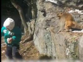 男孩逗小猴被猴妈拽下悬崖 安全课惊魂一幕
