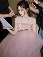 张予曦身着粉色抹胸矜贵甜美 纱裙轻扬灵动又闪耀