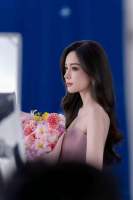 娜扎穿立体花饰粉裙手捧花束 甜笑灿烂侧颜精致